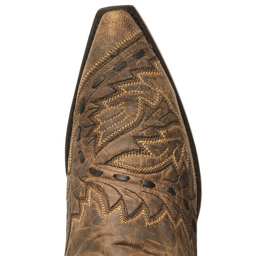 Step into comfort and style with the Sidewinder boot. Full-grain mad cat leather is detailed with western stitching and handlaced accents. Leather lined, snip toe, leather outsole, and a Soft Strike Orthotic insole for easy, all-day wear.